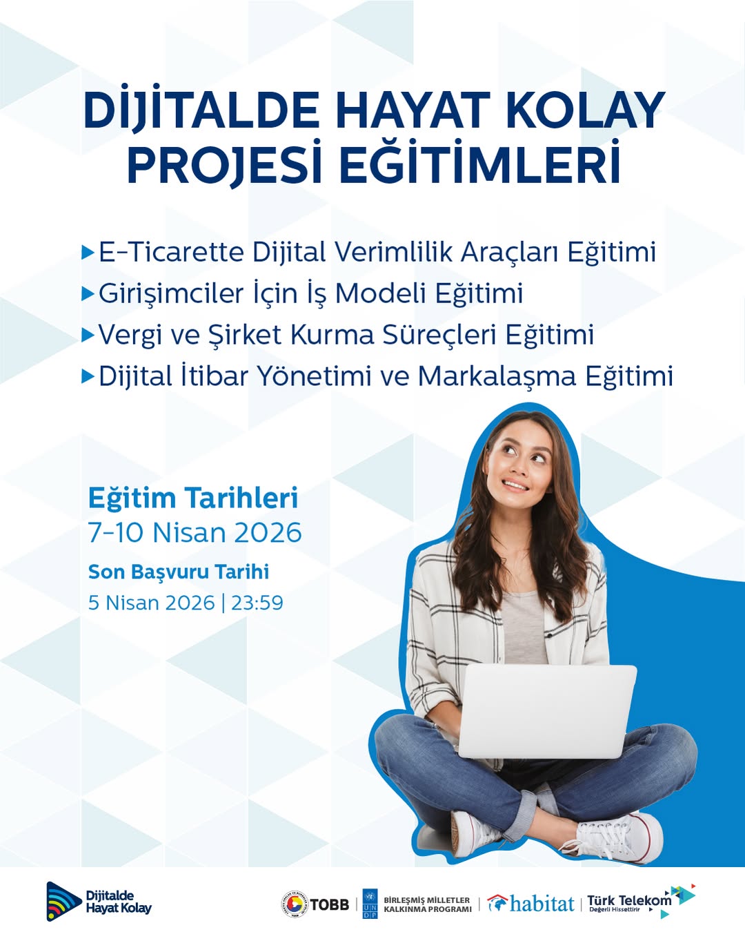 Türkiye Odalar ve Borsalar Birliği (TOBB), Birleşmiş Milletler Kalkınma Programı (UNDP), Habitat Derneği ve Türk Telekom ortaklığında yürütülen Dijitalde Hayat Kolay projesi kapsamında, girişimci ve girişimci adayı kadınların dijitalleşme, iş geliştirme ve markalaşma…